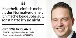 Zuweilen müssen die Abgeordneten nicht mal auf die Zeit nach ihrer Politlaufbahn warten, sondern werden schon währenddessen großzügig alimentiert. Ein besonders widerwärtiges, weil so offensichtliches Beispiel dafür liefert der stellvertretende CDU-Fraktionsvorsitzende in Nordrhein-Westfalen, Gregor Golland, der als Nebentätigkeit bei RWE angestellt ist und dafür fürstlich entlohnt wird. RWE? Da war doch gerade was … Richtig, die Vorgänge um den Hambacher Forst. Klar, wenn man solche Leute wie Golland auf der Gehaltsliste hat, dann hat man als Unternehmen auch bei eventuellen Rechtsbeugungen nicht zu viel befürchten.