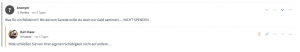 Seit gut einem Jahr veröffentliche ich auch immer mal wieder Artikel parallel zu unterströmt auf Publikum, so auch die beiden oben angeführten Artikel. Und auch dort ließ die Reaktion von ein paar Untertanen nicht lange auf sich warten. Diese habe ich mitsamt meinen Antworten darauf mal gescreenshotet, dokumentieren sie nämlich auch das grundsätzliche Fehlen von Bereitschaft, sich inhaltlich mit einer Ansicht auseinanderzusetzen, die nicht der eigenen entspricht.