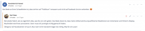Typisch hieran das Alter-weißer-Mann-Gebaren (s. dazu hier, hier und hier), das vielen Untertanen sehr zu eigen ist: Es wird einfach irgendeinen Behauptung rausgehauen im Brustton der Überzeugung, dass man selbst sich ja nicht irren könne. Auch wenn ich es in meiner Antwort richtiggestellt habe, dass ich sehr wohl auch auf Facebook unterwegs bin, wird das den guten Hansheinrich wohl nicht erreichen, denn ich gehe nicht davon aus, dass solche Typen daran interessiert sind, Anmerkungen zu dem von ihnen verzapften Blödsinn überhaupt auch nur wahrzunehmen – es könnte ja an der eigenen selbstgefälligen Selbstgerechtigkeit kratzen.
