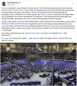 Und so bekomme ich auch immer wieder zu hören: „Nein, die CDU wird sicher nicht mit der AfD koalieren!“ Das liegt vermutlich daran, dass man die Union noch immer zu den demokratischen Parteien zählt, was sie aber schon länger nicht mehr ist. Nicht nur in puncto Rechtsoffenheit, Sozialdarwinismus und Rassismus geben sich CDU und natürlich auch die Schwesterpartei CSU (die ja in Bayern sogar den Neonazi und Antisemiten Hubert Aiwanger nach wie vor als Vize-Ministerpräsidenten dulden) seit Jahren zunehmend dem Rechtsextremismus zugewandt, auch die immer offensichtlicher zutage tretende Korruption ist einer Demokratie ausgesprochen abträglich.