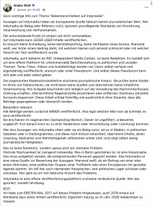 Dann kommt dazu, wo das Bekennerschreiben veröffentlicht wurde: auf Indymedia. Und das ist dann eben schon mal so eine Sachen, wie Andre Wolf vom Faktencheck-Portal Mimikama auf seinem Facebook-Account beschreibt: