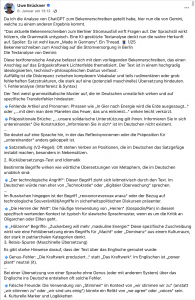 Denn es finden sich doch einige Unstimmigkeiten in diesem Schreiben, auf die dann auch wieder weniger in den herkömmlichen Medien, sondern von in sozialen Medien journalistisch Tätigen hingewiesen wurde. So zum Beispiel von Uwe Brückner auf seiner Facebook-Wall: