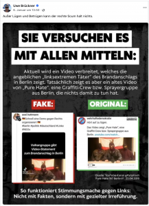 Und natürlich machen rechte Hetzer dann auch wieder gleich Stimmung, gern auch mit Lügen und zusammengeschusterten Fake News, wie Uwe Brückner auf seiner Facebook-Seite dokumentiert: