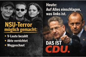 Rechten Terror verharmlosen und sogar fördern, und bei allem, was auch auf den ersten Blick links aussieht, auch wenn das noch gar nicht klar ist, gleich den Untergang des Abendlandes herbeifabulieren – das ist mittlerweile die CDU. Und damit machen sie sich nach der AfD ebenfalls zu Schergen von solchen Antidemokraten wie Wladimir Putin, die demokratische Gesellschaften nur zu gern destabilisiert sehen wollen.